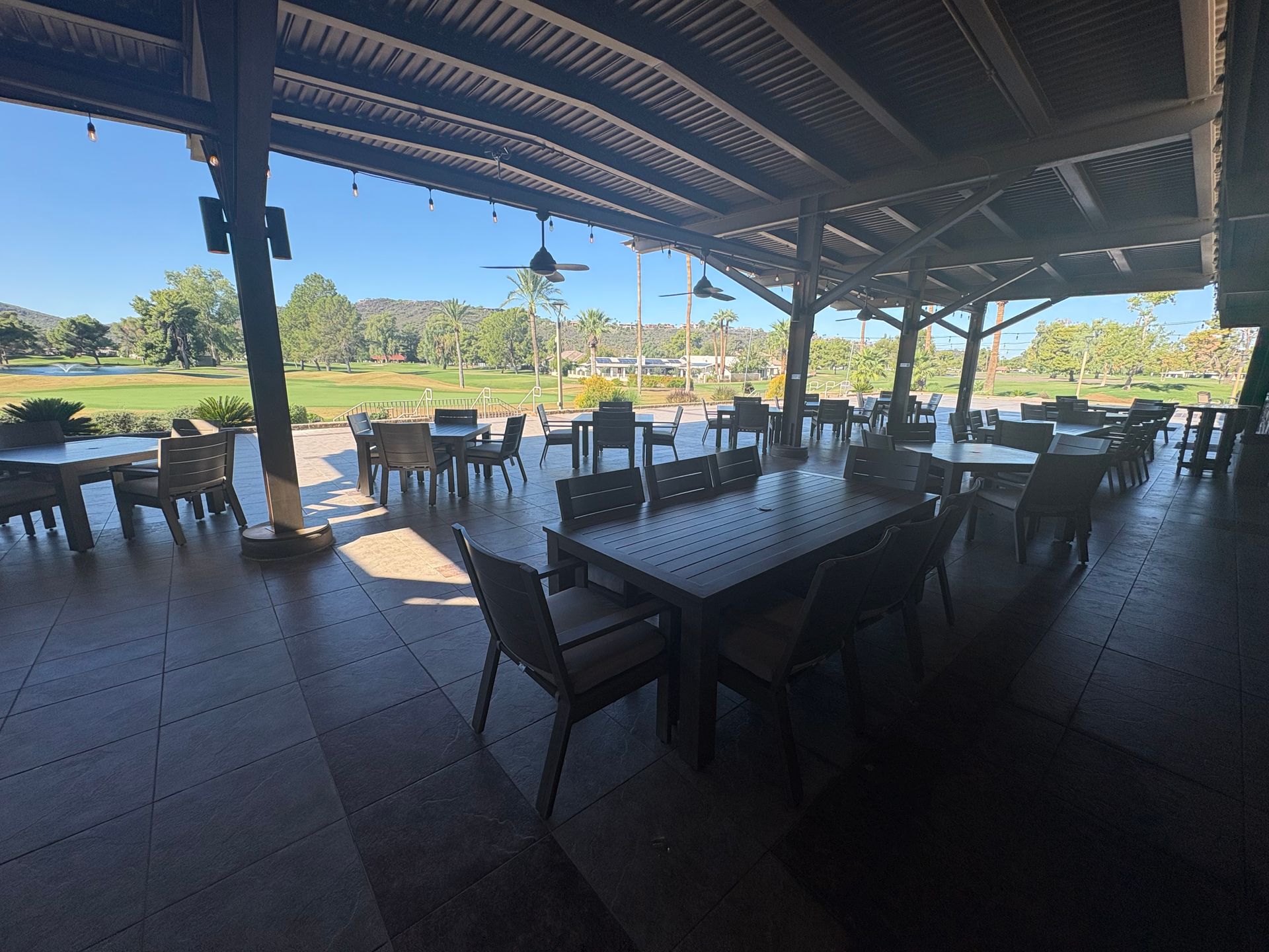 Finally, the large covered terrace overlooks the 9th green and the 10th tee box where our spectacular Arizona sunsets may be viewed whether enjoying a full dinner or a casual cocktail, this will surely be your cozy retreat!